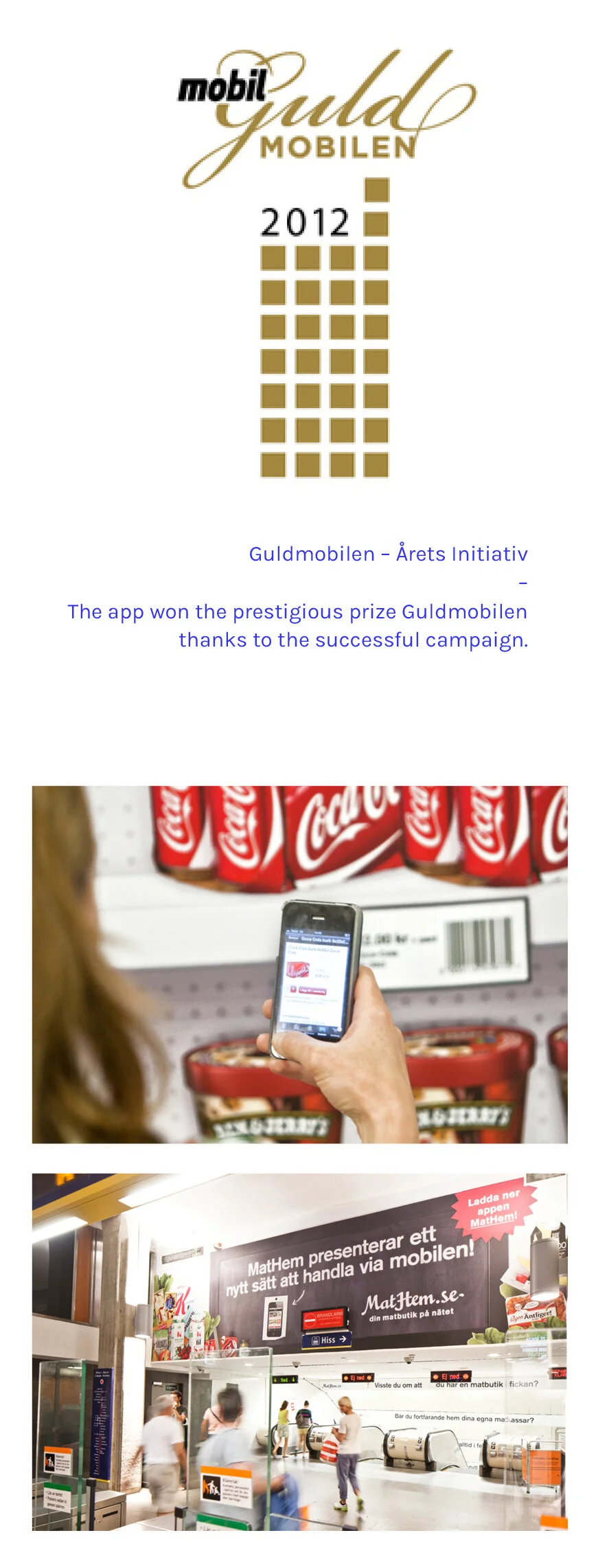 Collaborating with copywriter Embla, I conceived the campaign titled “Visste du om att du har en matbutik i fickan?” (Did you know you have a food store in your pocket?). Drawing inspiration from Tesco’s campaign in Korea, we implemented a virtual wall in the subway, allowing commuters to scan chosen groceries, seamlessly continue shopping via the app during their subway ride, and ultimately receive home delivery.