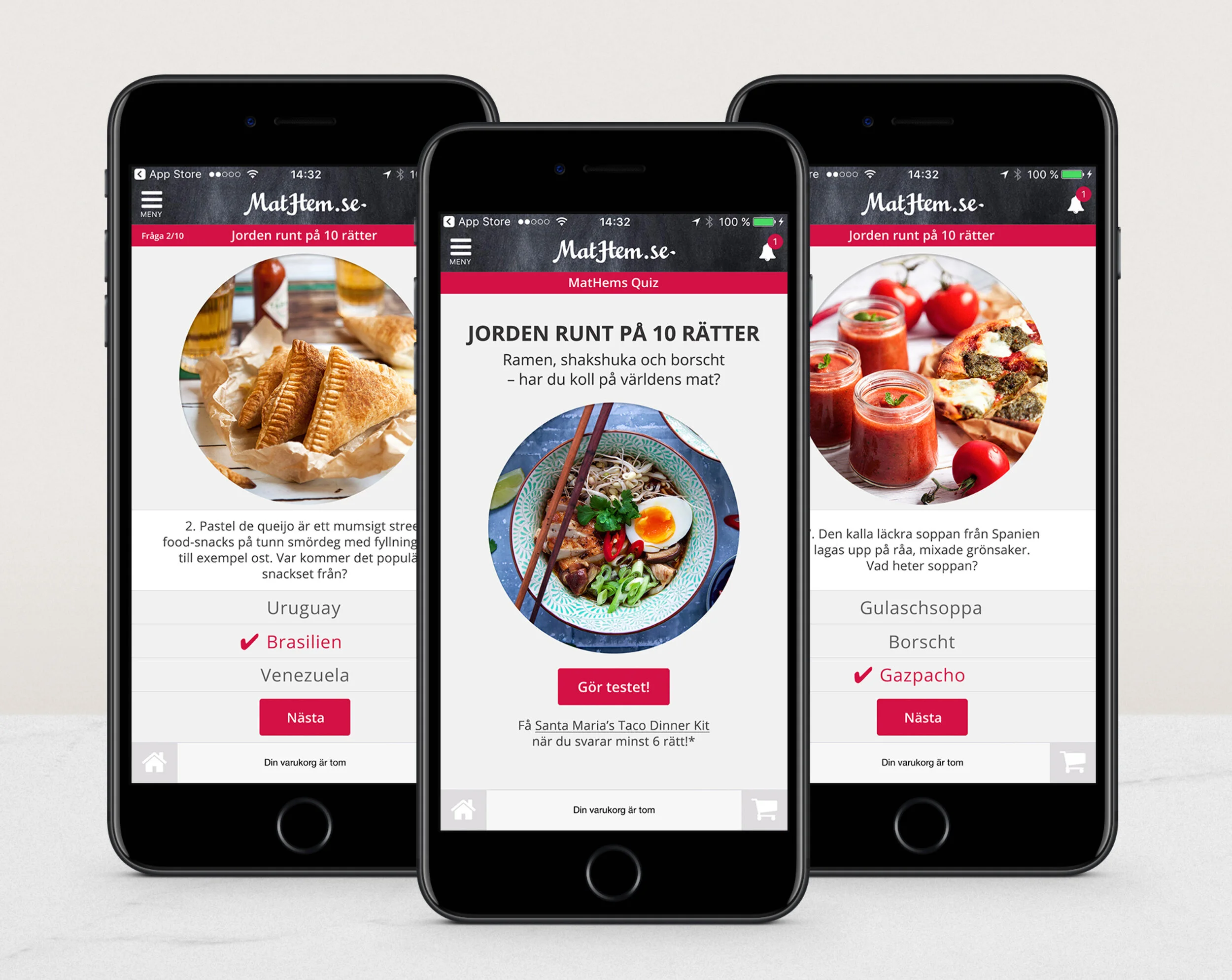 During the course "Tjejer Kodar/Women Hacking" in I coded a food quiz for MatHem to inspire both current and potential customers. I got a deeper understanding of both the front end and back end of coding, that has helped me to communicate better and has given me a deeper understanding within digital projects afterwards.